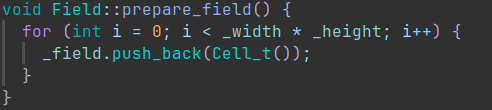 Затем объявил одномерный массив клеток с названием field и инициализировал его при помощи цикла for и двух переменных width и height.